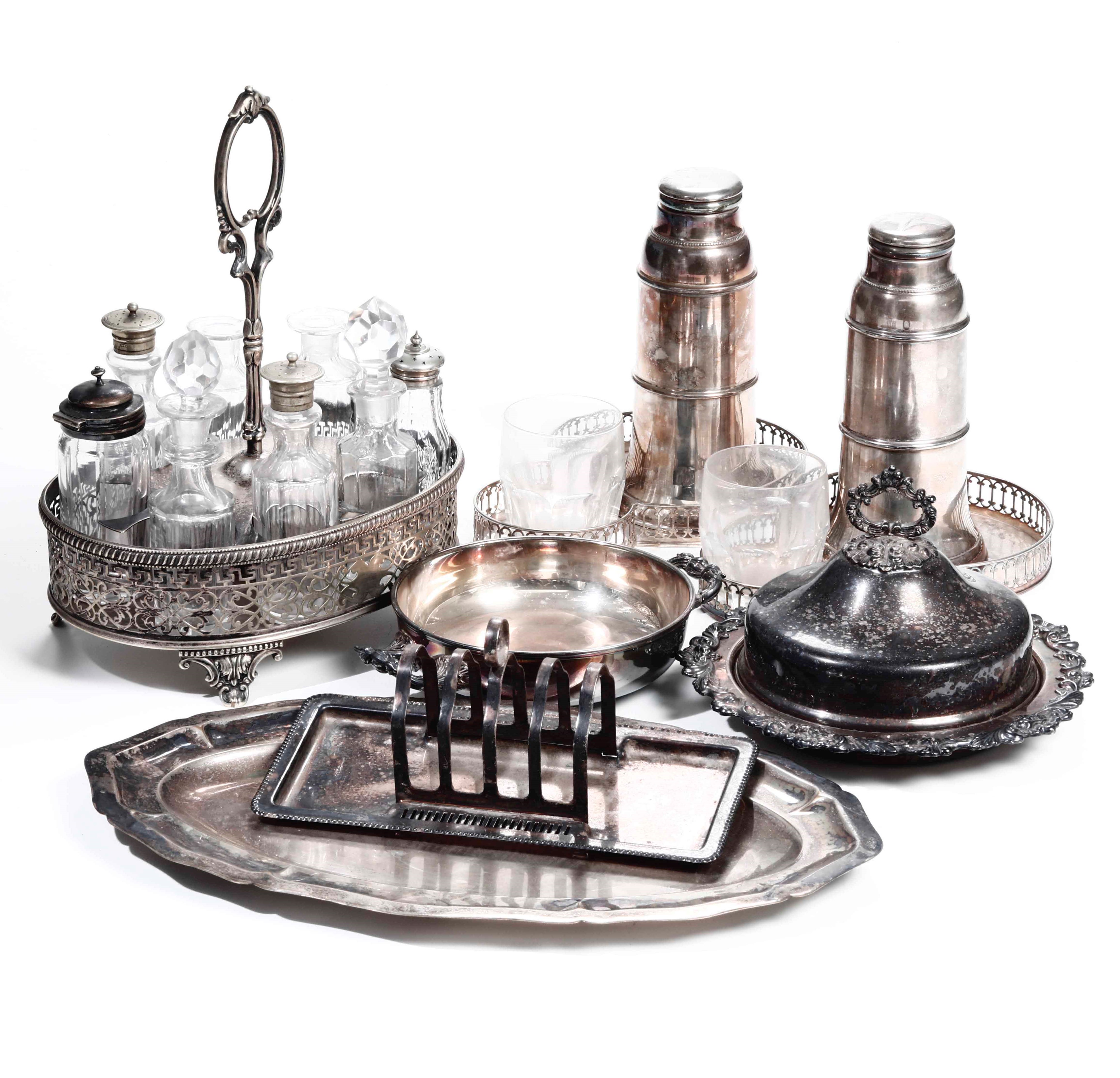 Insieme di oggetti in metallo argentato