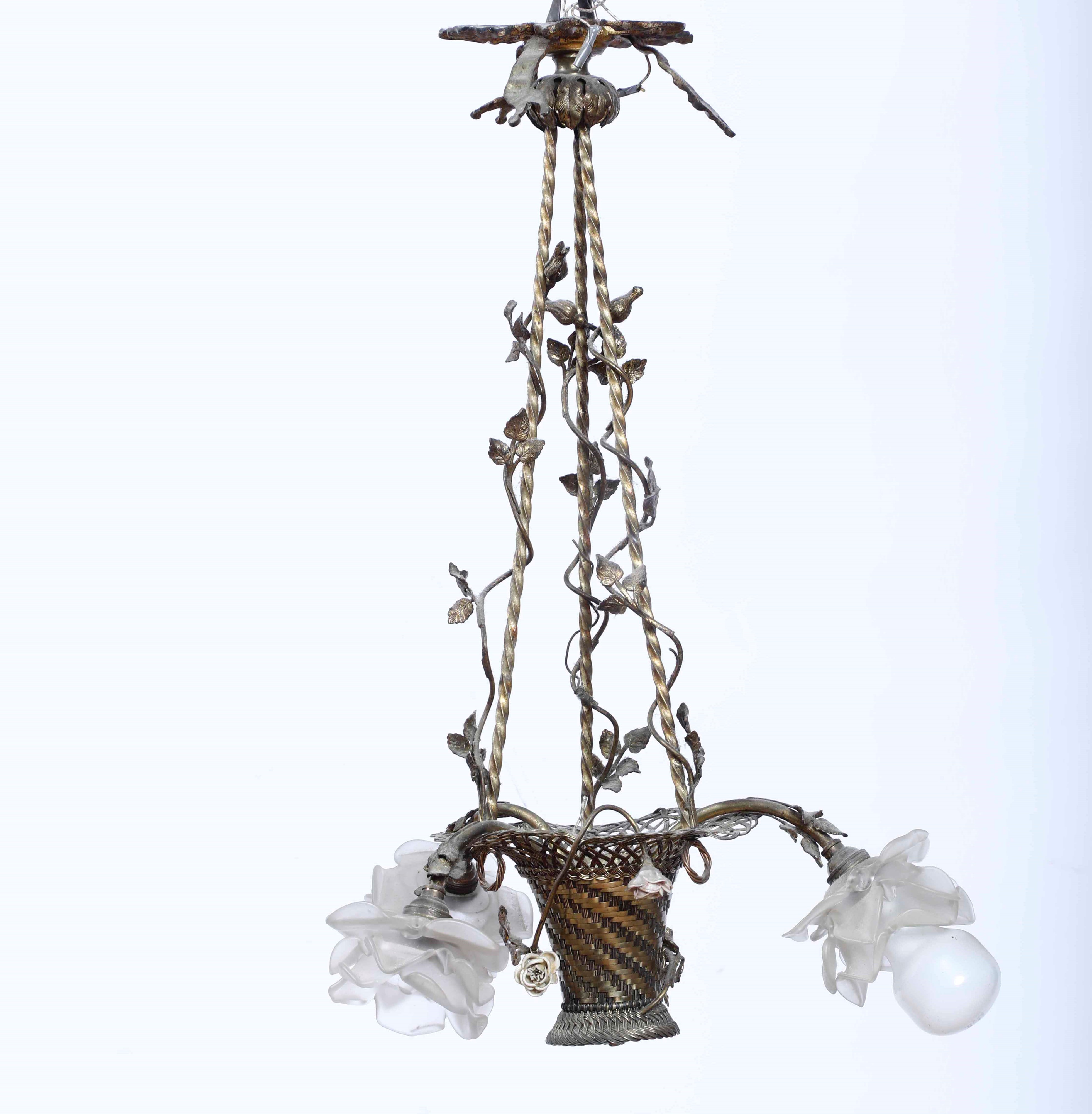 Lampadario a tre luci in bronzo dorato. XX secolo