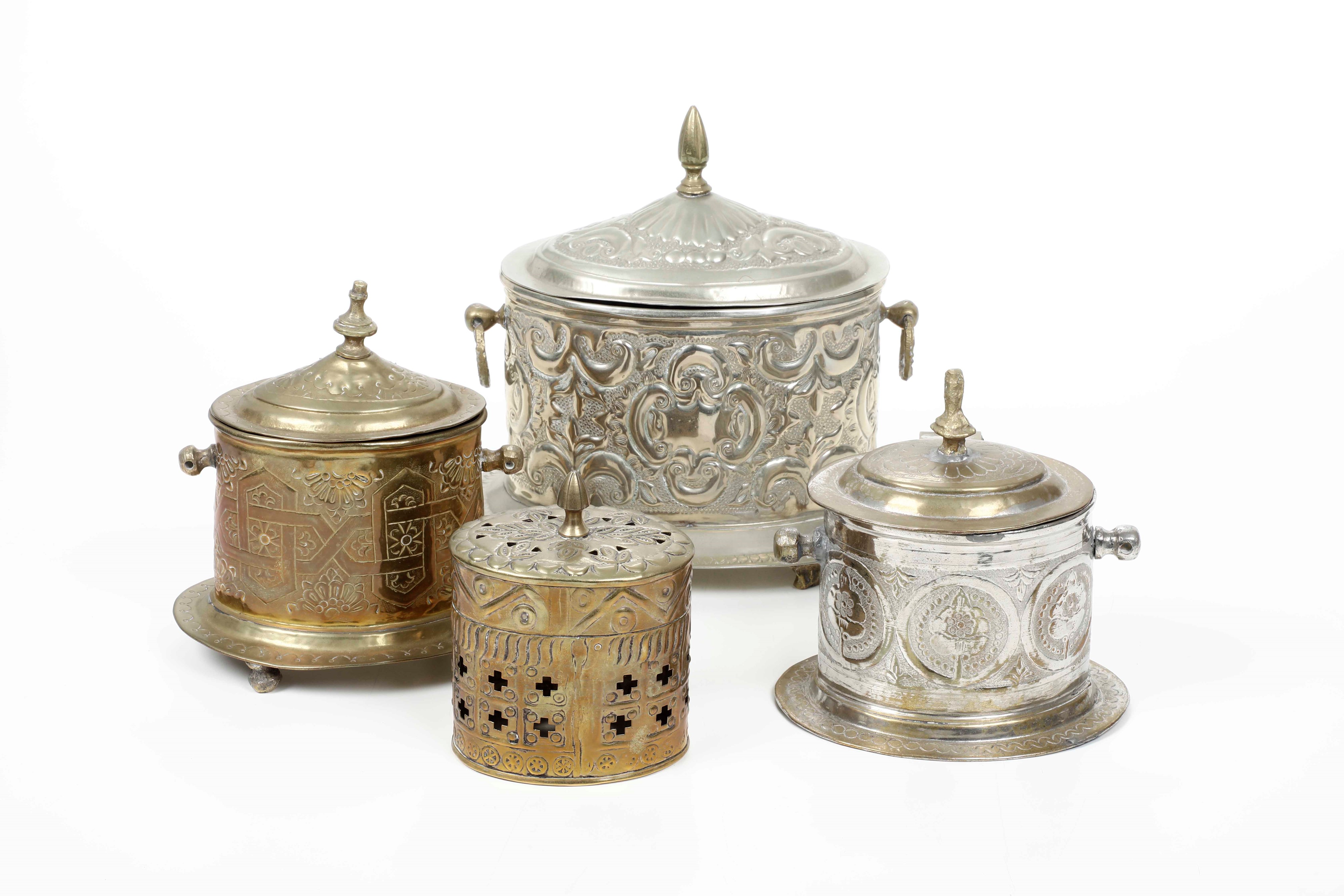 Lotto composto da quattro contenitori in peltro. Manifattura orientale, XX secol [..]