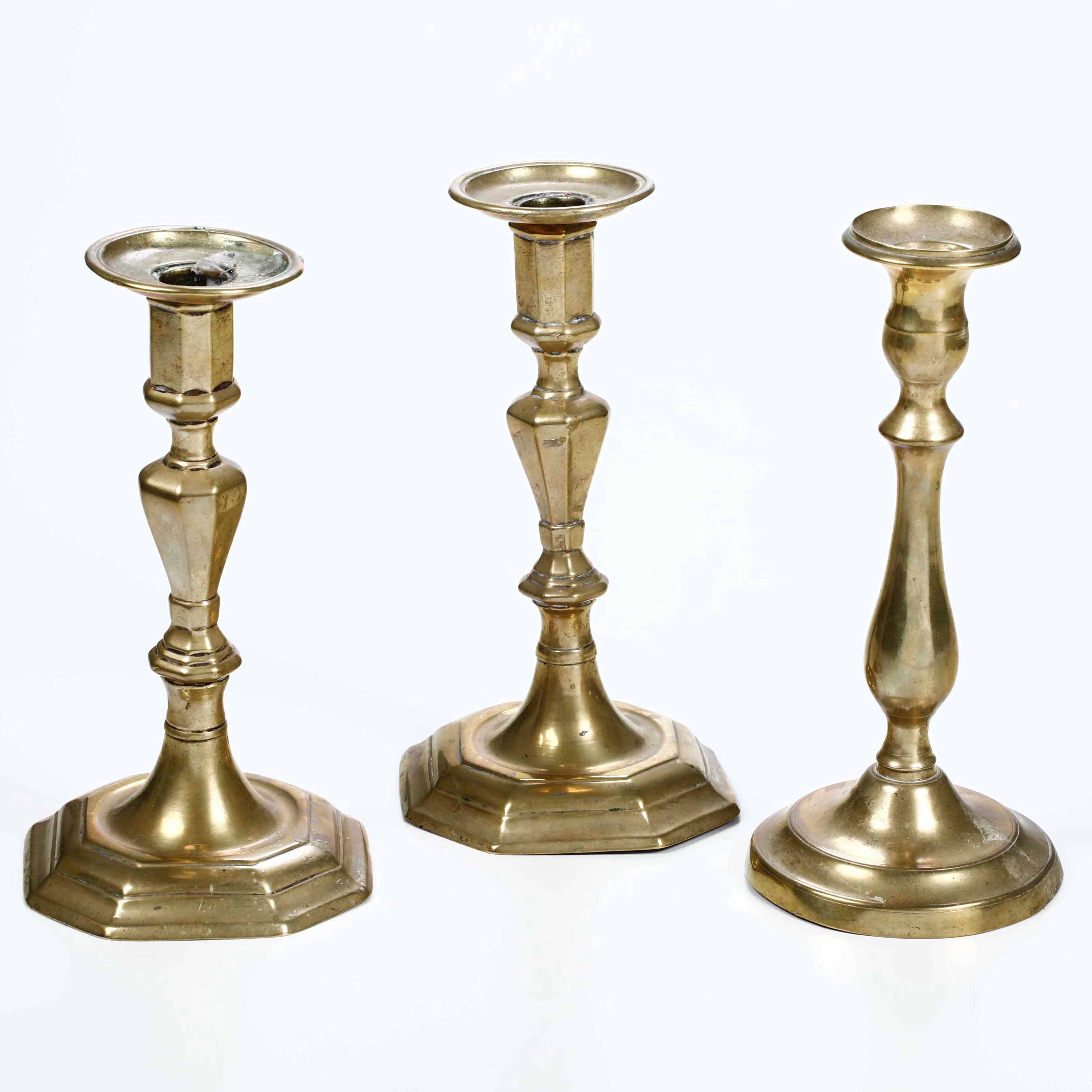 Lotto di tre candelieri in bronzo dorato, XVIII - XIX secolo