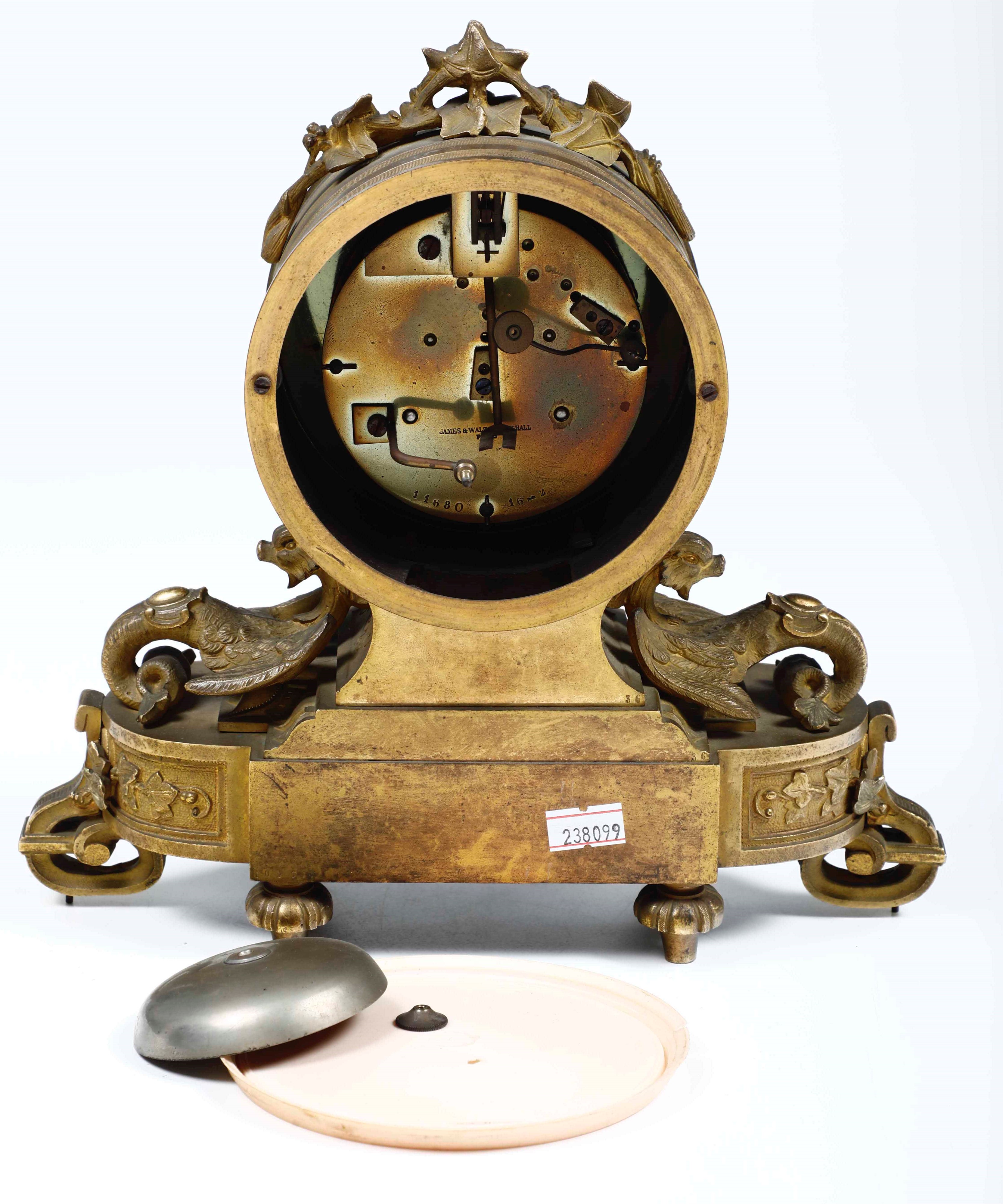 Pendola da tavolo in bronzo dorato e placche in porcellana di Sevres. James and [..]