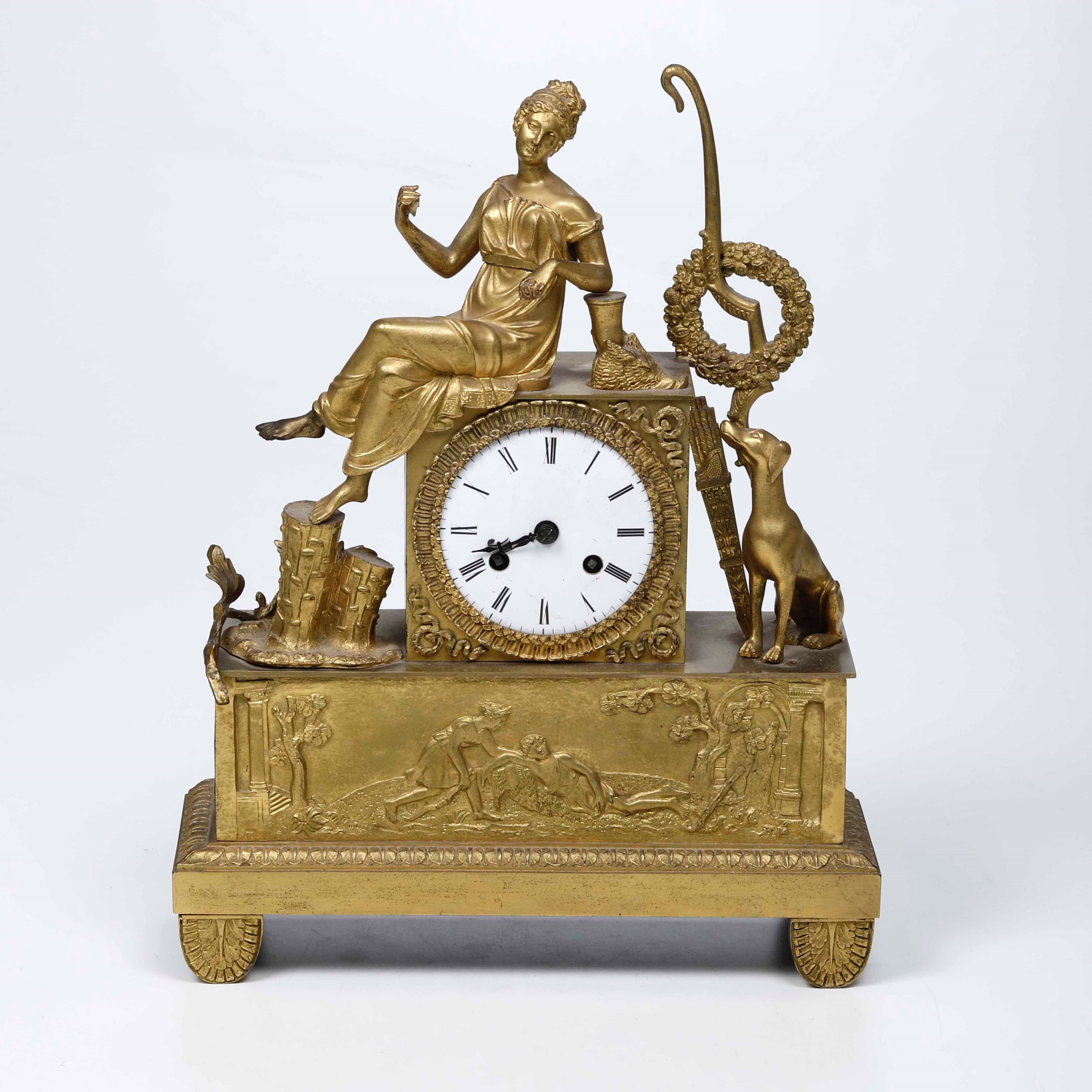 Pendola da tavolo in bronzo dorato. Francia XIX-XX secolo