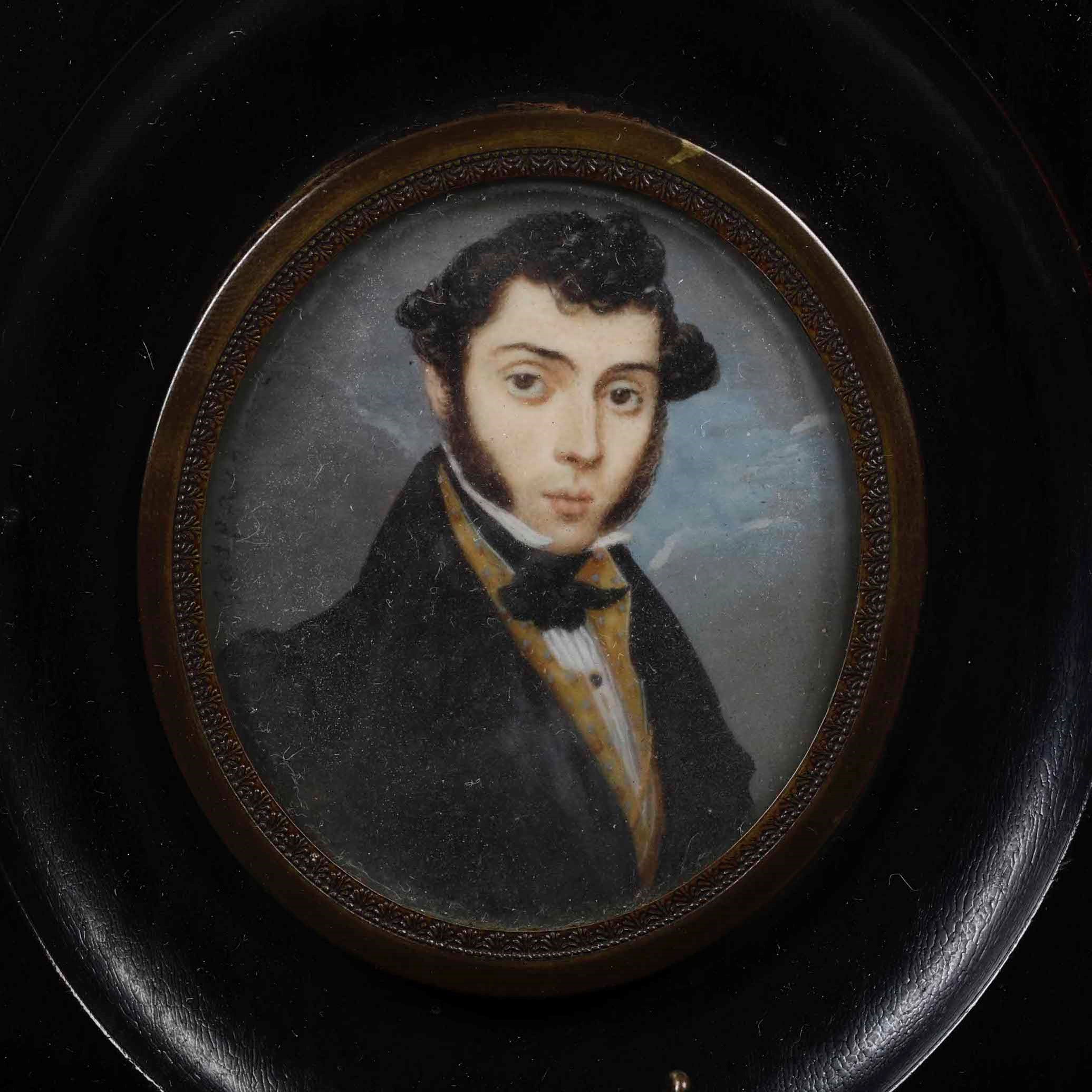 Quattro miniature con ritratti, entro cornici ebanizzate
