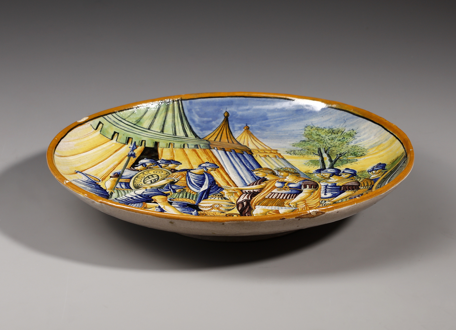 Alzata in maiolica policroma raffigurante le ricchezze dell'accampamento di Dario [..]