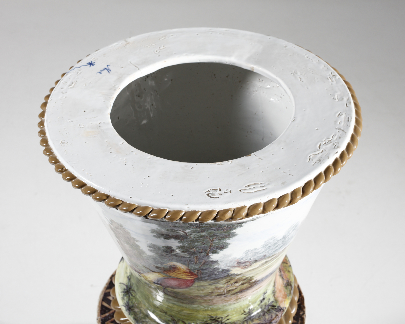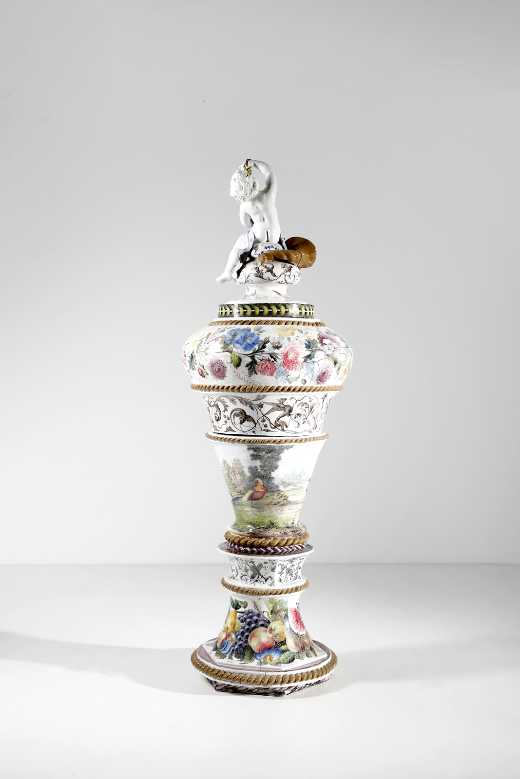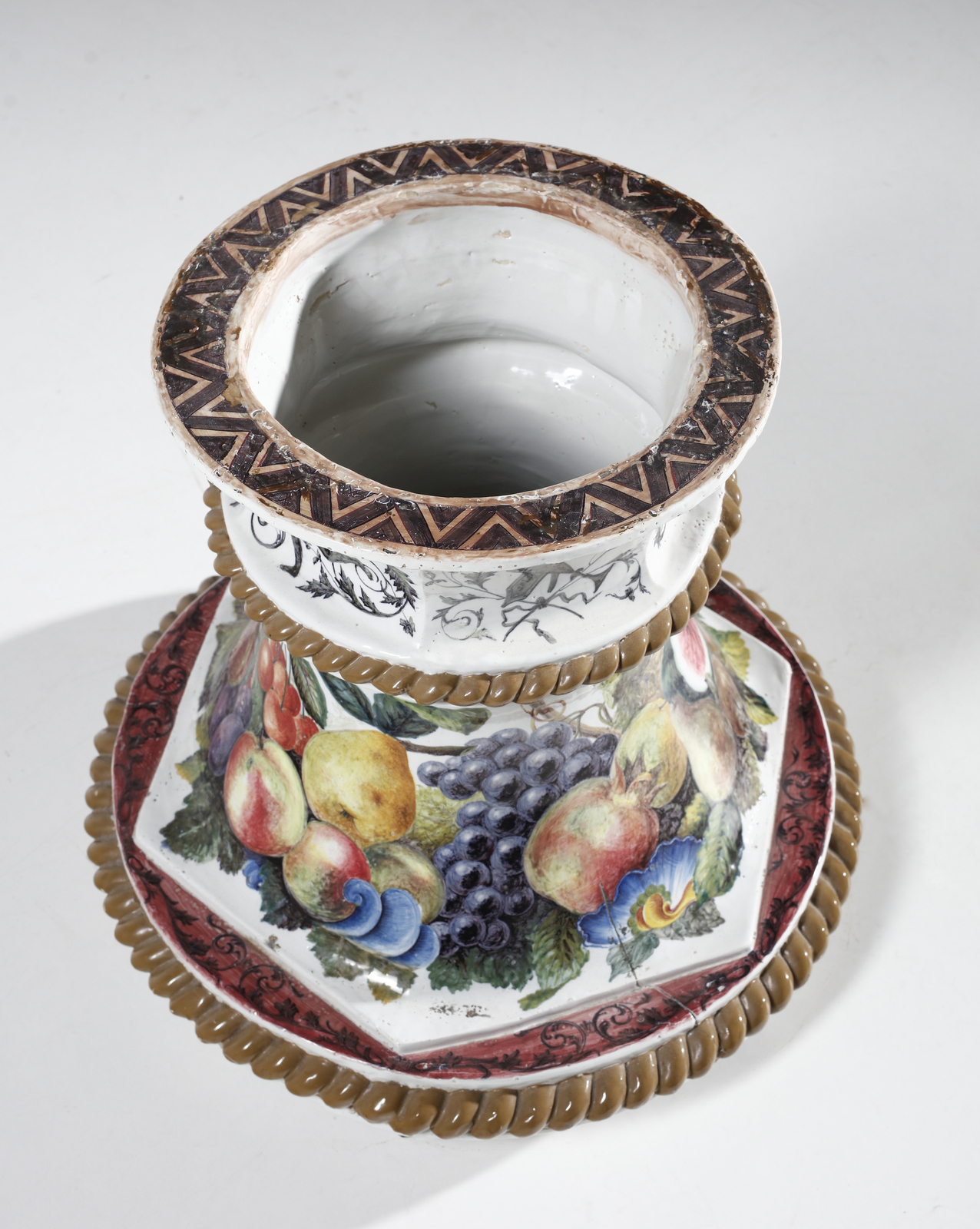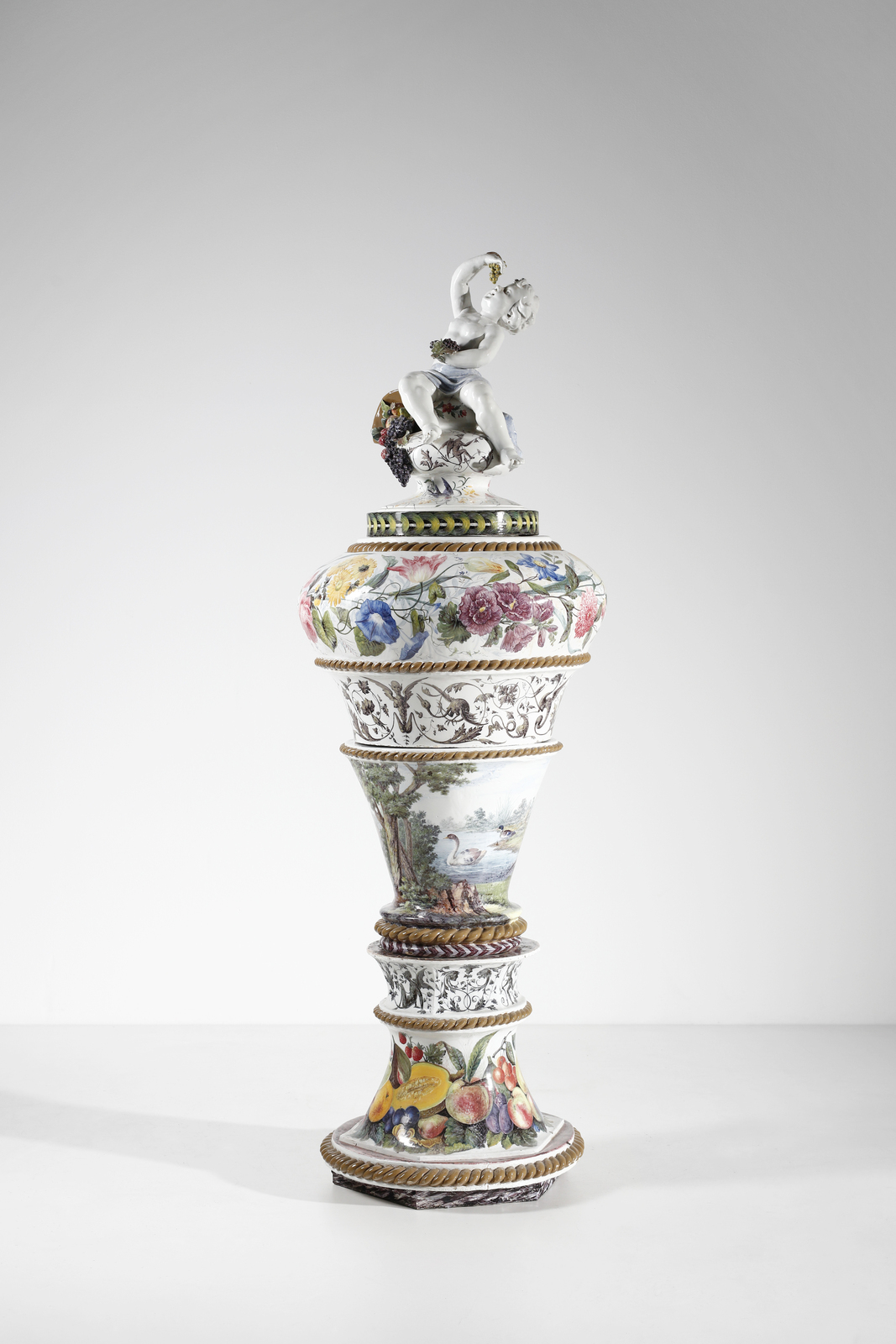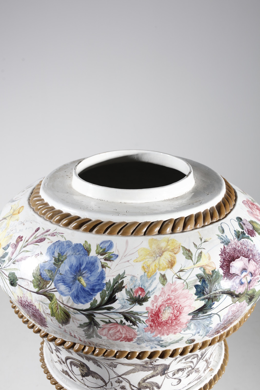 Attribuito a. Grande vaso in ceramica dipinta con decorazioni di fiori e frutti [..]