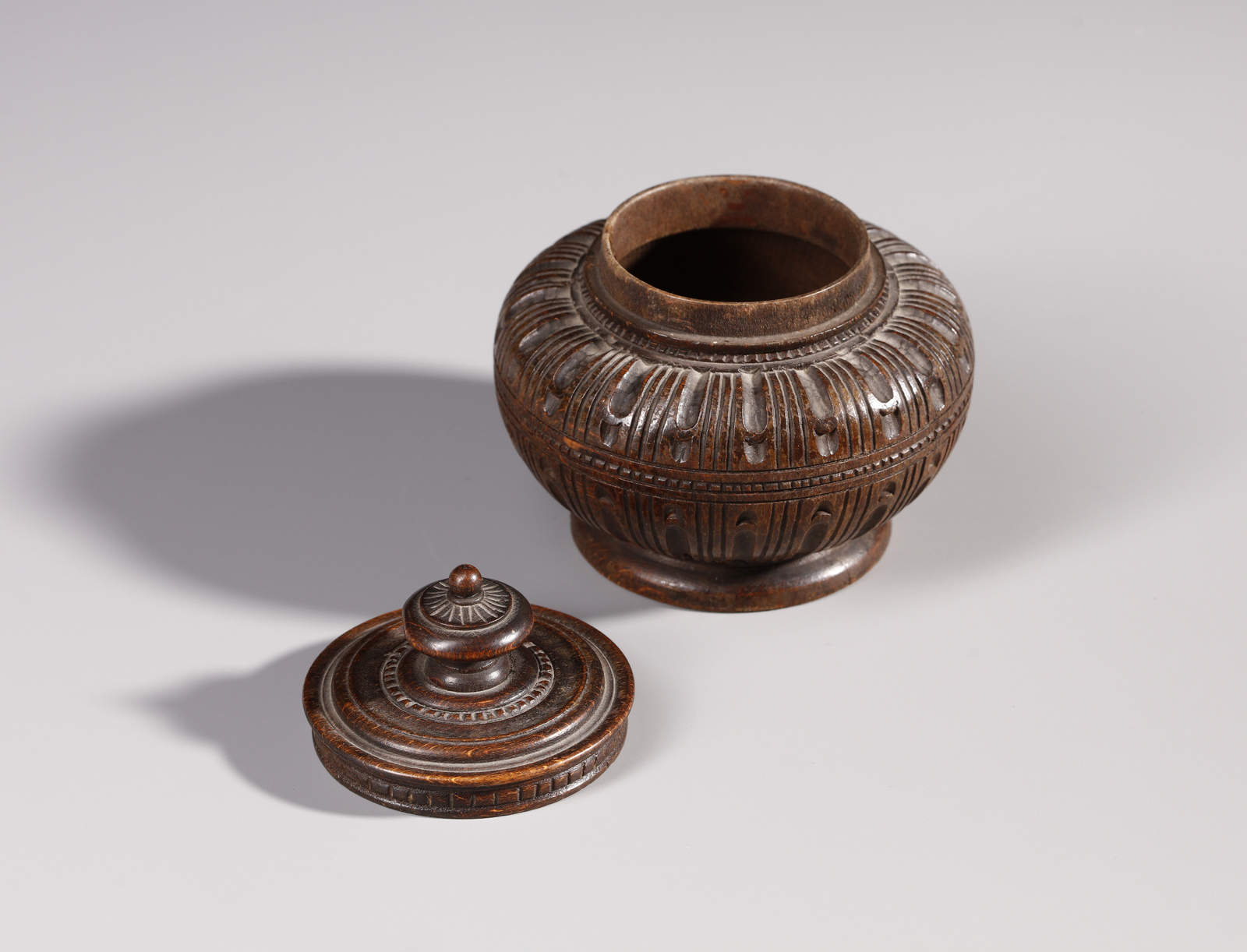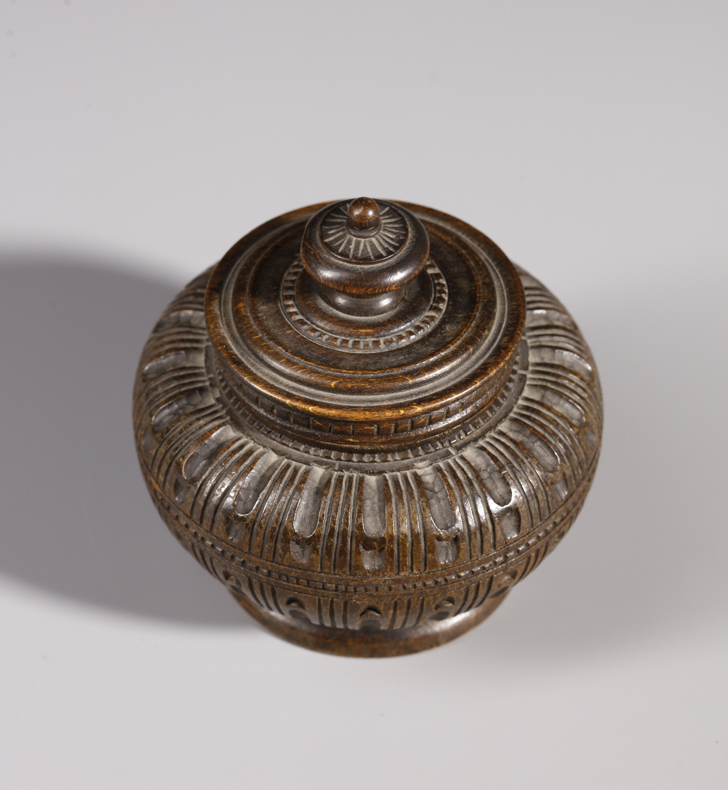 Cofanetto ad urna in legno scolpito recante la scritta Urbino al retro del coper [..]