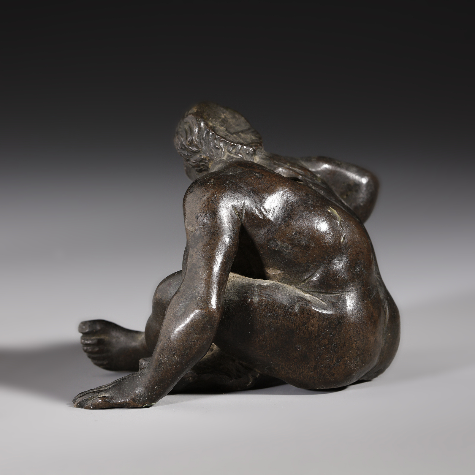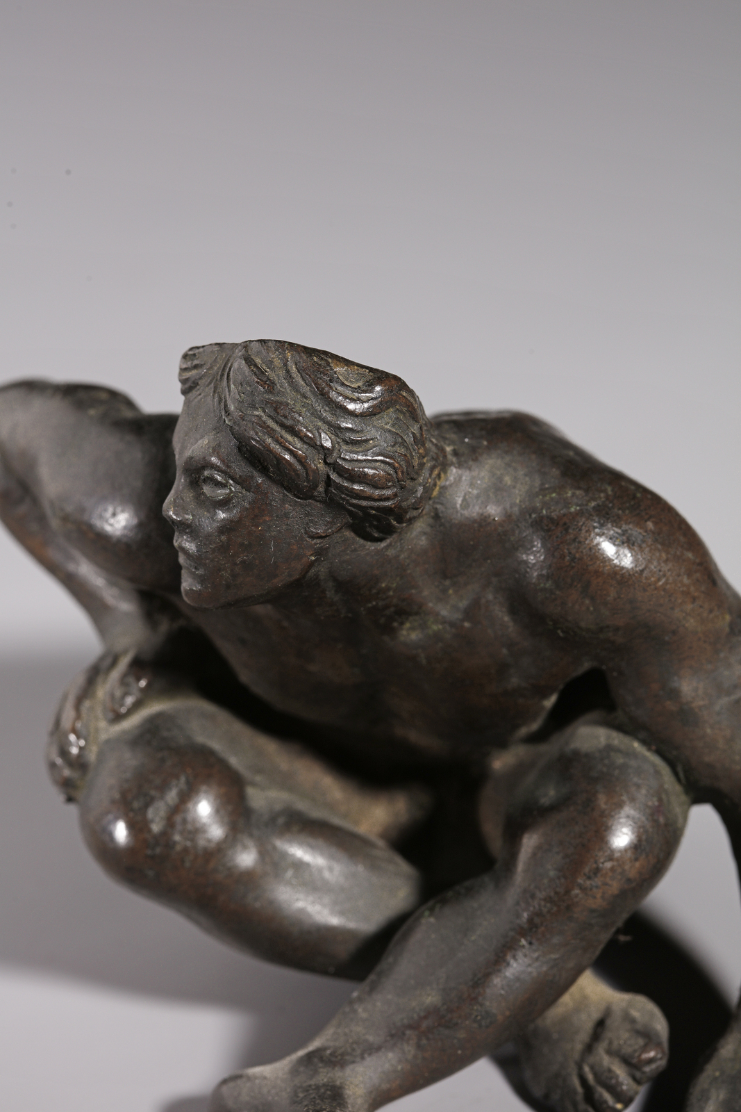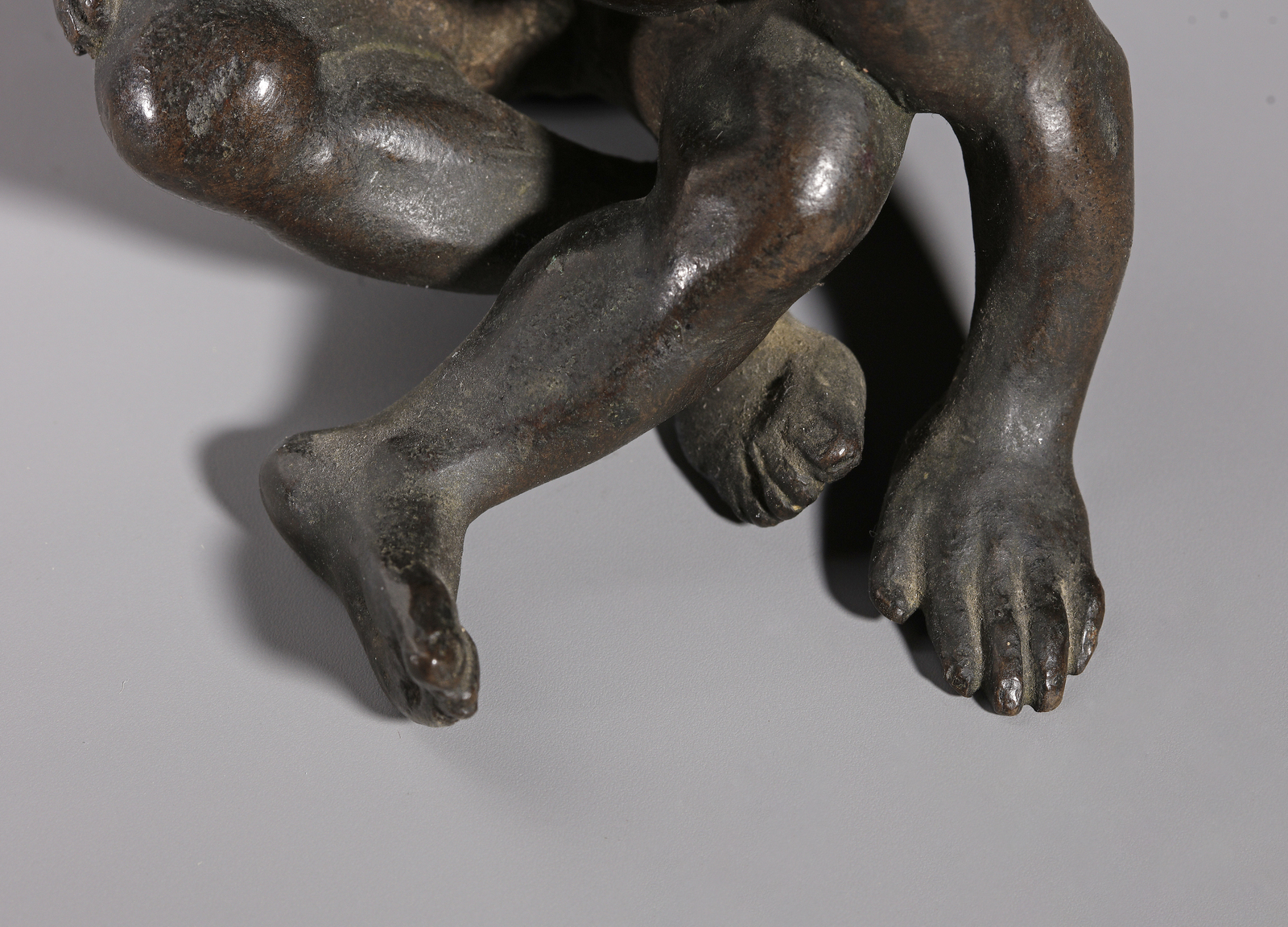 Si può supporre che questa figura, in origine, facesse parte di un calamaio o di una struttura tripode in bronzo poggiante su supporti in forma umana.