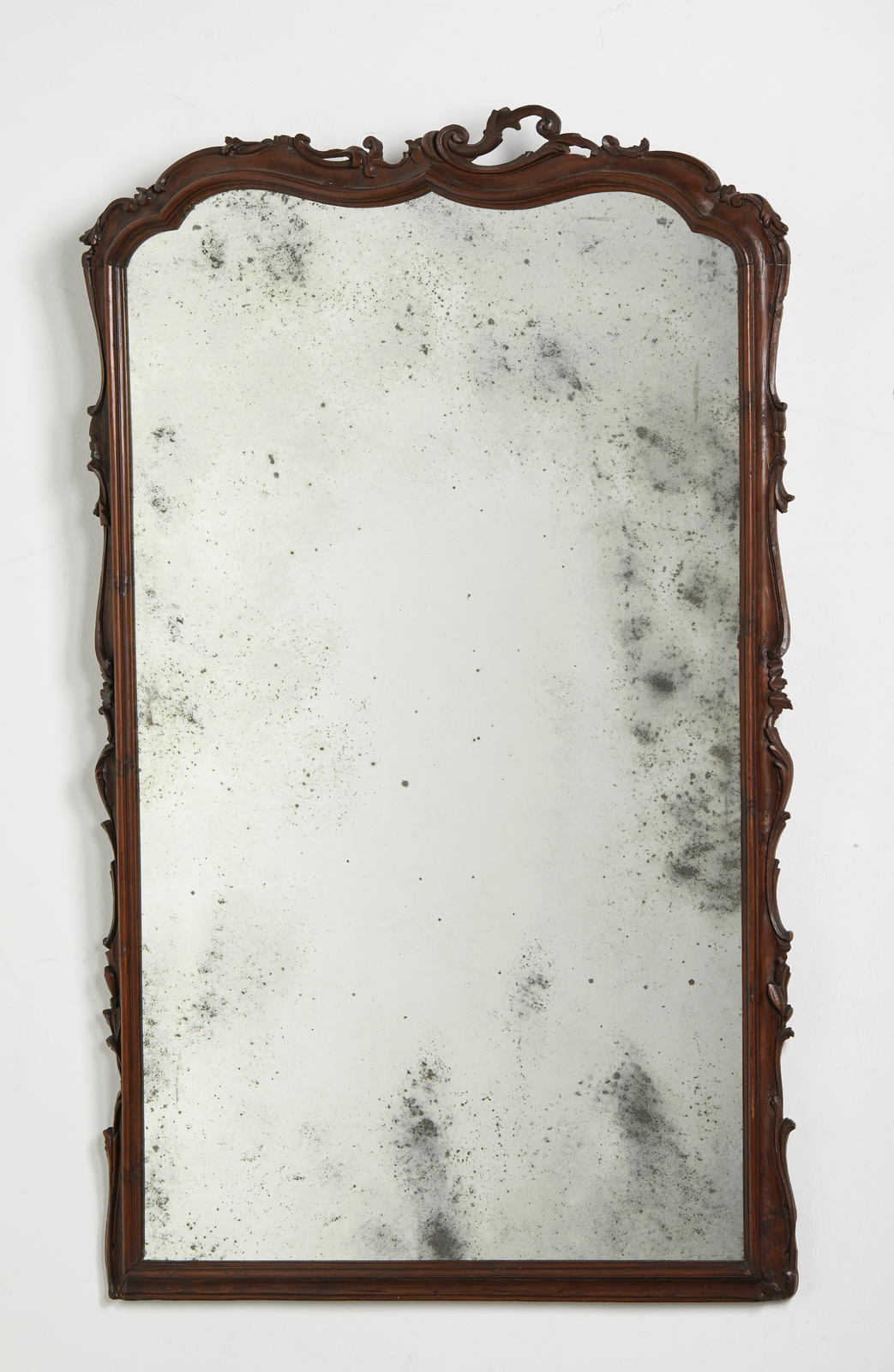 Specchiera in noce intagliata a motivi fitomorfi e a volute
