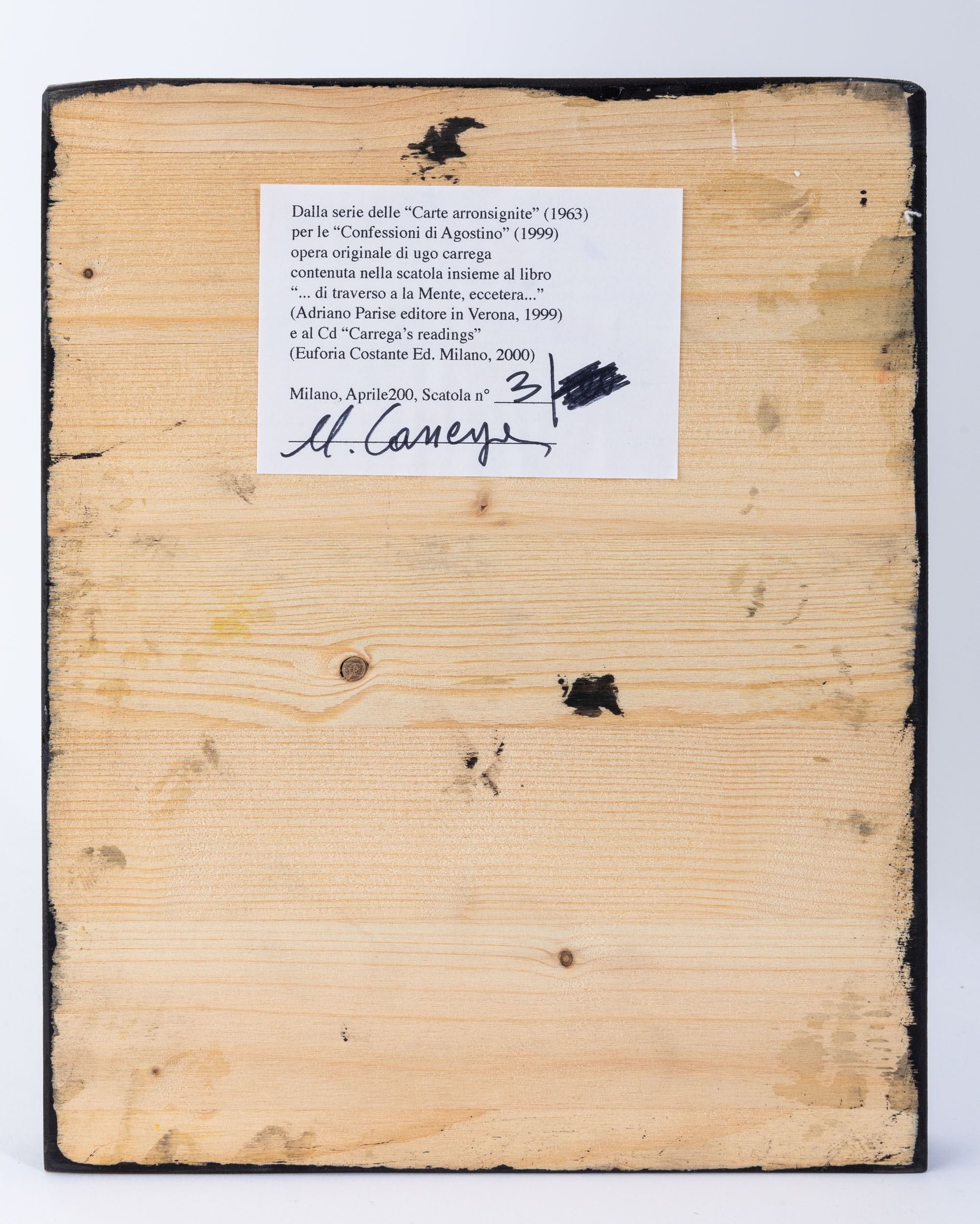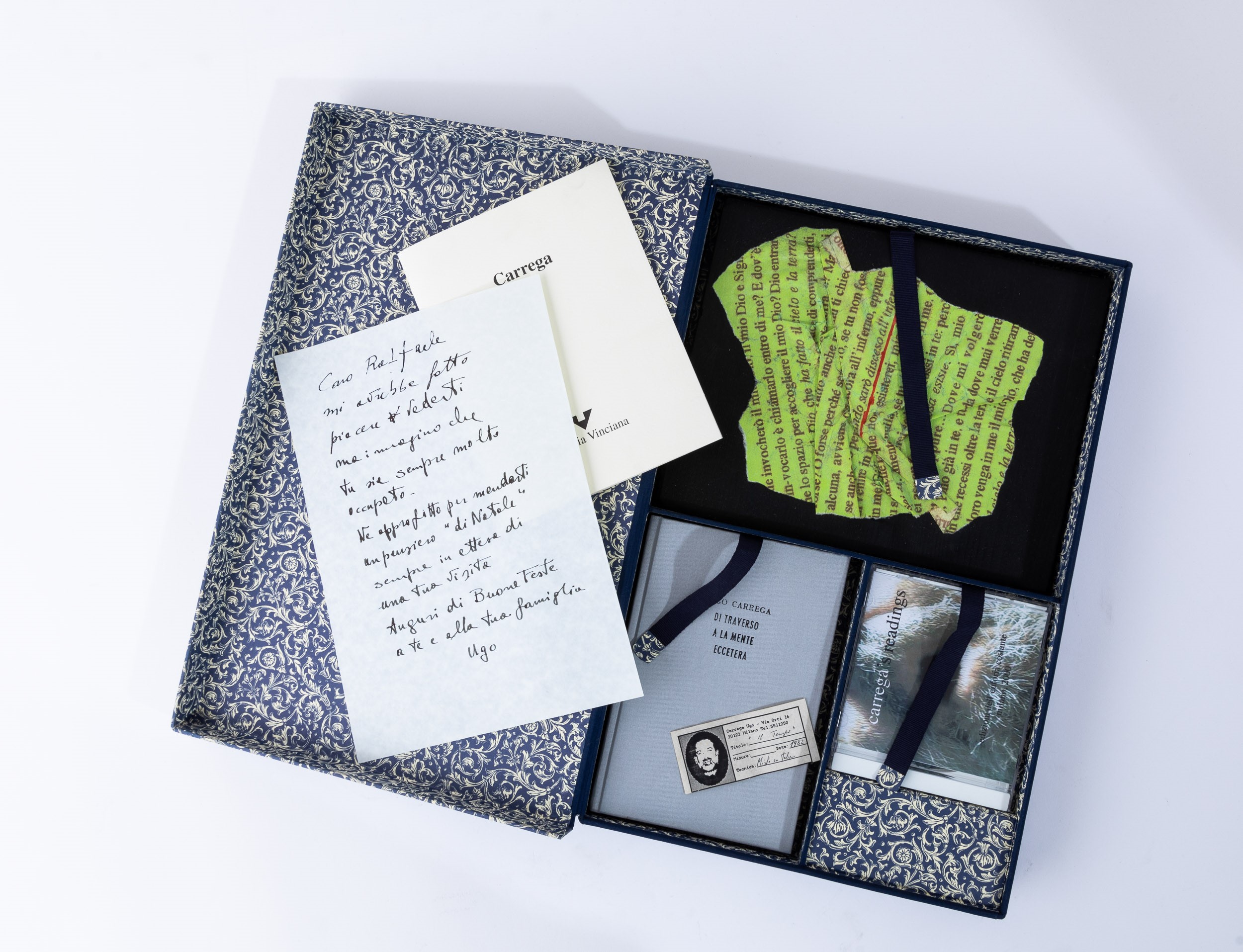 scatola contenente un libro, un cd e un lavoro dalla serie Carte arronsignite, Largh. 30 - Alt. 45 Cm