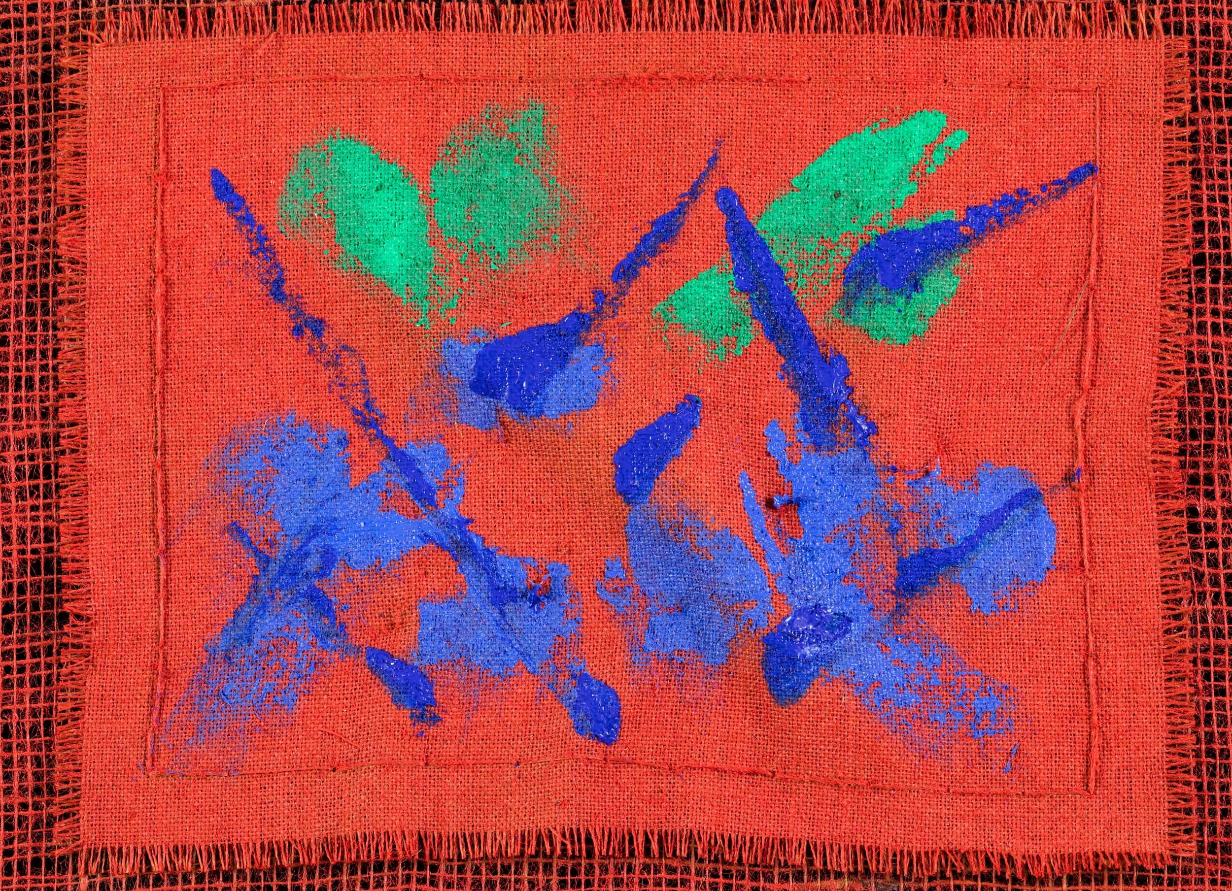terre colorate su tela di juta, Largh. 80 - Alt. 60 Cm