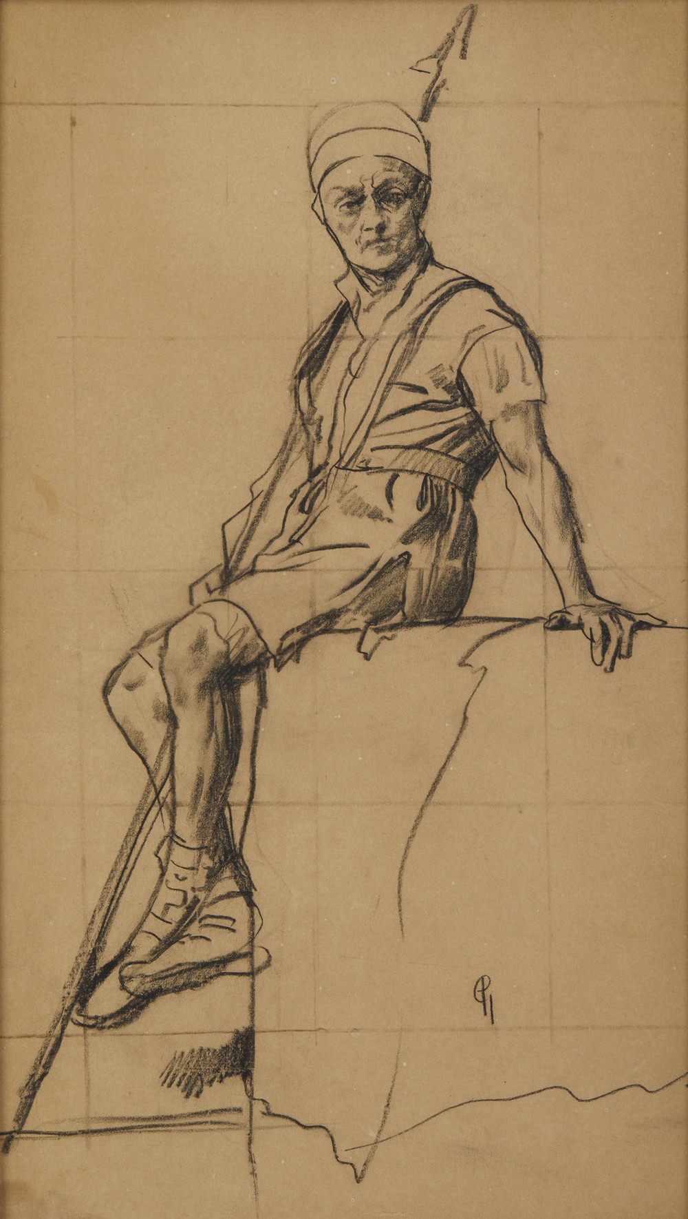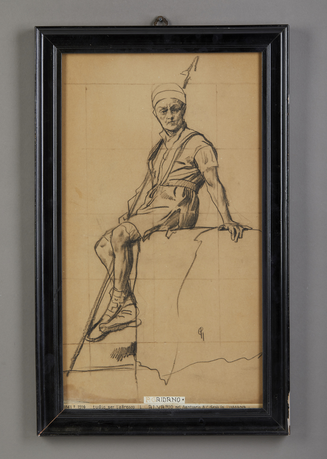 Siglato in basso a destra. Iscrizione al fondo ''Studio per l'affresco Il Calvario nel santuario S.C. Gesù in Bussana''