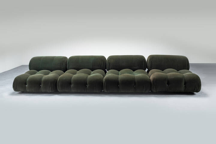 Sistema modulare costituito da quattro elementi uniti da anelli e moschettoni con imbottitura in poliuretano rivestita in tessuto. Prod. C&B primi anni '70 cm 64x90x92 Bibl.: Giuliana Gramigna Repertorio del Design Italiano1950-2000 Allemandi 2011 pag. 188