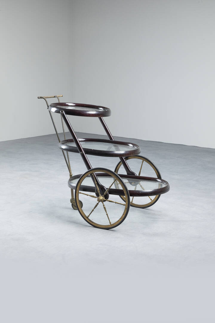 Carrello con struttura in legno particolari in ottone piani in vetro. Anni '50 [..]