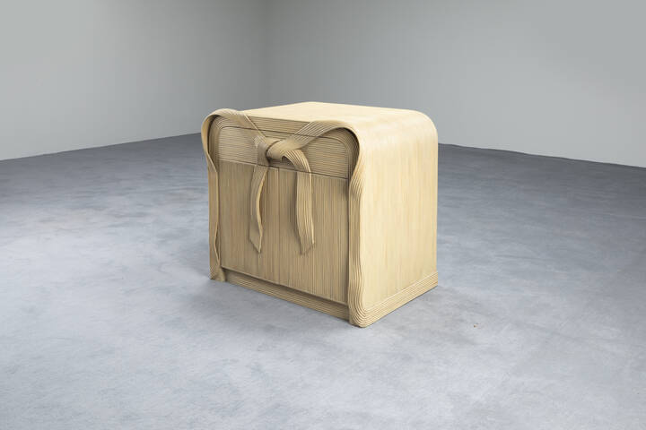 Cassettiera in rattan riscaldato e piegato a umido su scheletro in legno. Anni '80 [..]