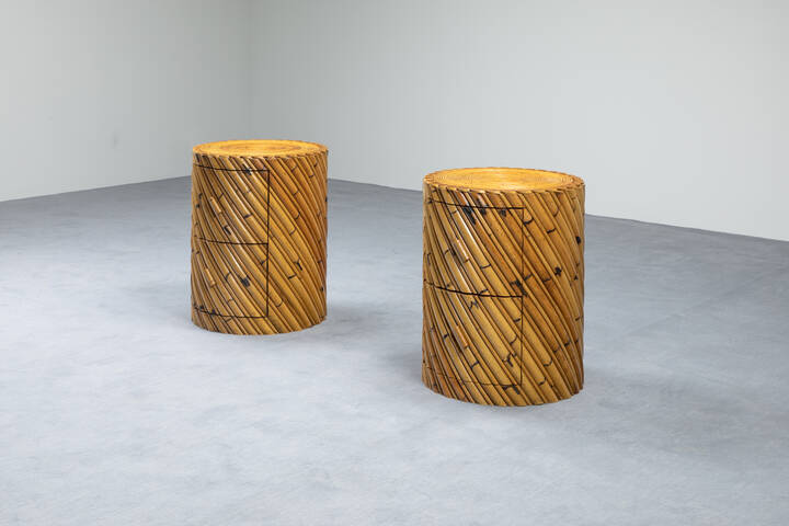 Coppia di comodini in bamboo. Anni '70 cm 61x48 5