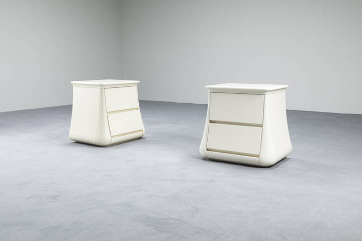 Coppia di comodini in legno laccato. Anni '70 cm 52x48x38