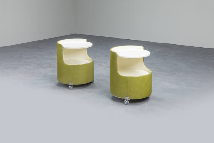 Coppia di comodini rivestiti in pelle. Prod. Poltrona Frau fine anni '60 cm 52x41 Difetti