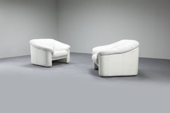 Coppia di poltrone con struttura in legno e rivestimenti in pelle. Anni '70 cm 75x100x85