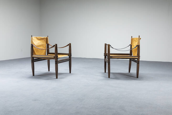 Legno di faggio tessuto e cuoio. Prod. Zanotta fine anni '60 cm 77x58x59 Bibl.: Domus n. 609 settembre 1980 pagg. 6 7