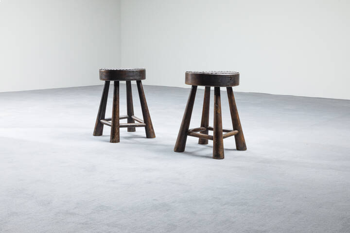 Coppia di sgabelli in legno massello. Anni '50 cm 40x30