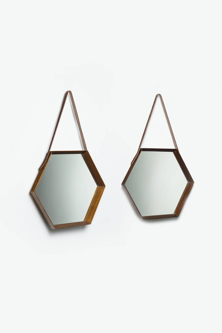 Coppia di specchiere con bordo in legno. Anni '60 cm 47x52