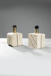 Coppia di lampade da tavolo in travertino. Anni '70 cm 26x15 5x12