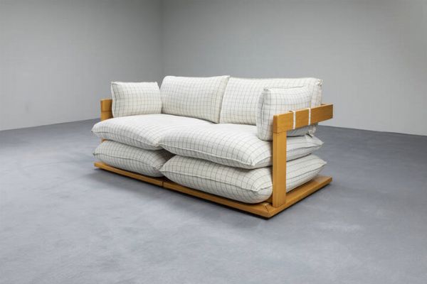 Divano con struttura in legno cuscini imbottiti rivestiti in tessuto. Prod. UVET [..]