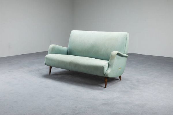 Imbottitura rivestita in tessuto gambe in legno. Prod. Cassina anni '50 cm 77x136x74