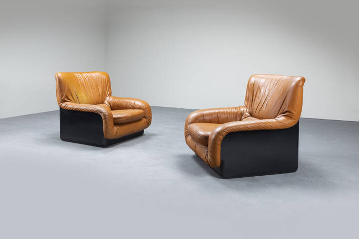 Due poltrone con imbottitura rivestita in cuoio scocca in ABS. Anni '70 cm 80x8 [..]