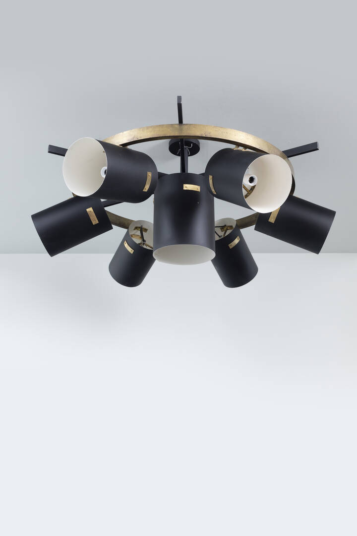 Grande lampadario in metallo verniciato e particolari in ottone. Anni '50 cm 58x125 [..]