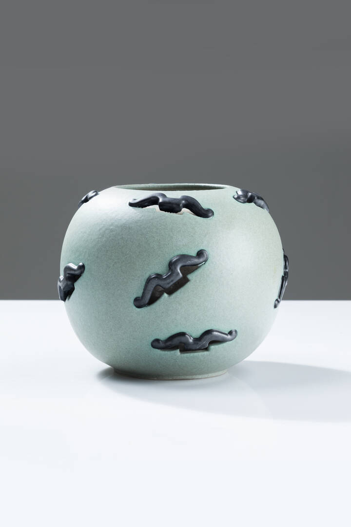 Vaso in ceramica a doppio corpo Prod. La Fiamma Albissola Capo anni '30 Marcato e firmato sotto la base h cm 16