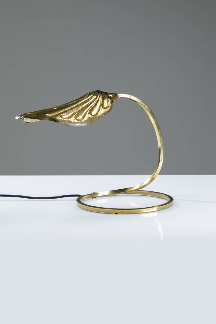 Lampada da tavolo a una foglia in ottone. Anni '70 h cm 32