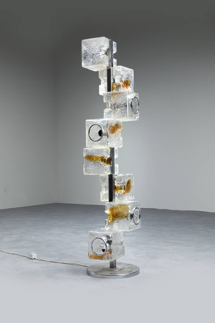 Lampada da terra in metallo cromato diffusori in vetro di forte spessore. Anni [..]