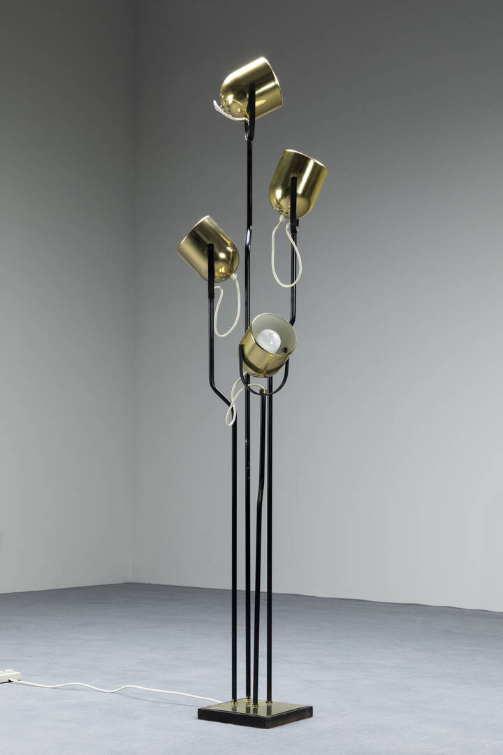 Lampada da terra in metallo verniciato diffusori in ottone. Anni '60 h cm 165