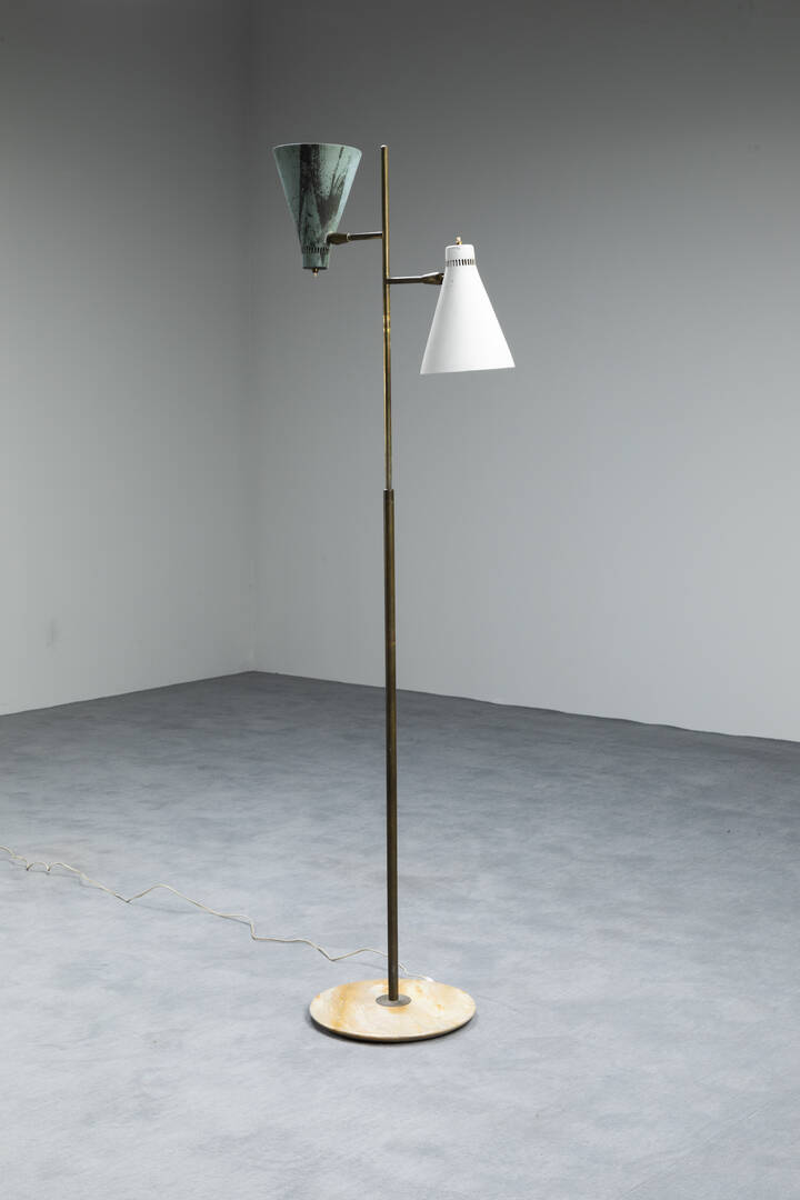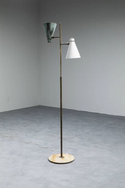 Lampada da terra in ottone diffusori in metallo verniciato base in marmo. Prod. [..]