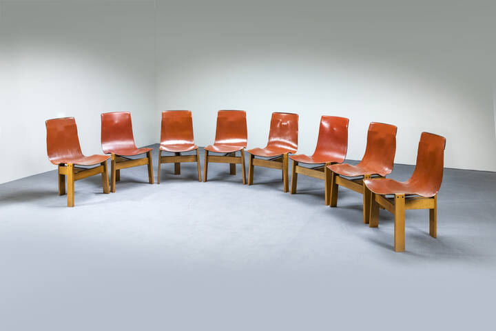 Legno massello seduta in cuoio. Prod. Skipper anni '70 cm 92x49 5x57 Bibl.: Giuliana Gramigna Repertorio del Design Italiano1950-2000 Allemandi 2011 pag. 253