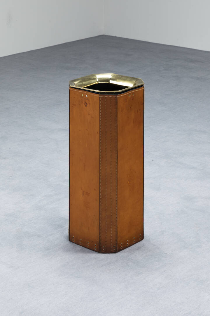 Portaobrelli in metallo rivestito in cuoio. Prod. Dimensione Fuoco anni '70 h cm [..]