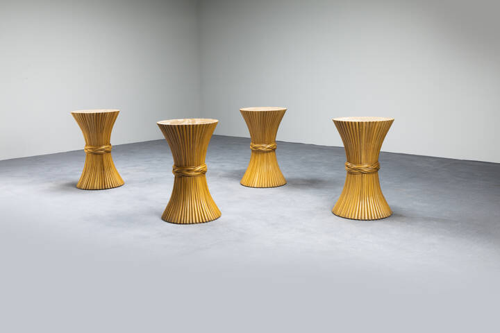 Quattro tavolini in bamboo. Anni '70 cm 64x40