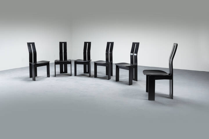Sei sedie in legno verniciato seduta imbottita rivestita in pelle. Anni '80 cm [..]