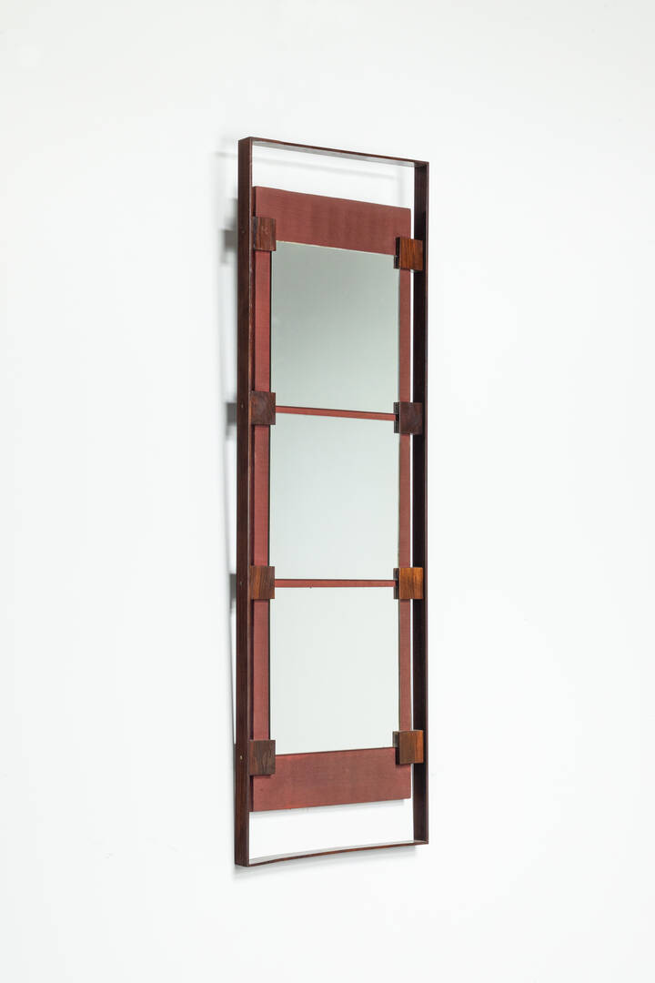 Specchiera composta da tre specchi su supporto in legno. Anni '50 cm 131x41