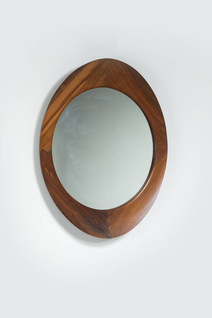 Specchio con cornice in compensato curvato. Anni '60 cm 76x67