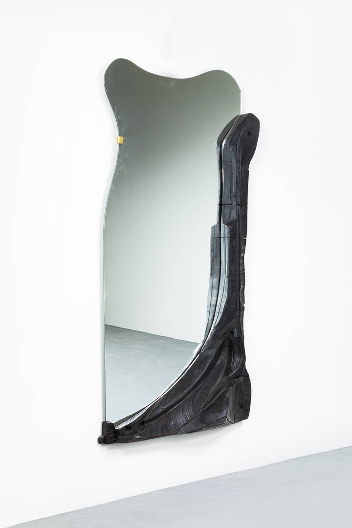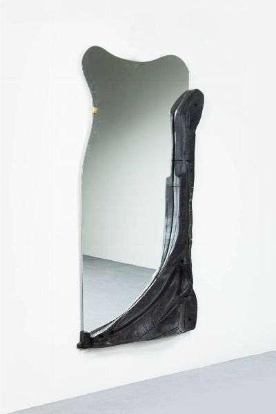 Specchio in legno scultoreo realizzato per dimora privata. Anni '60 h cm 170