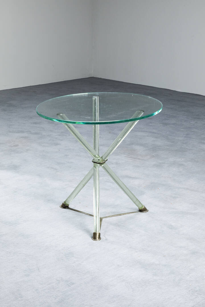Tavolino con struttura in vetro pulegoso piano in vetro molato di forte spessore. Anni '50 cm 60x60