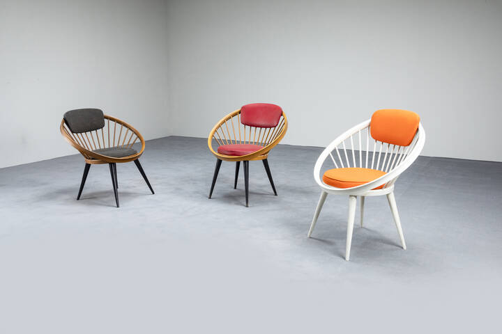 Struttura in legno di faggio verniciato e legno ebanizzato cuscino imbottito rivestito in skai. Anni '60 cm 73x66x46