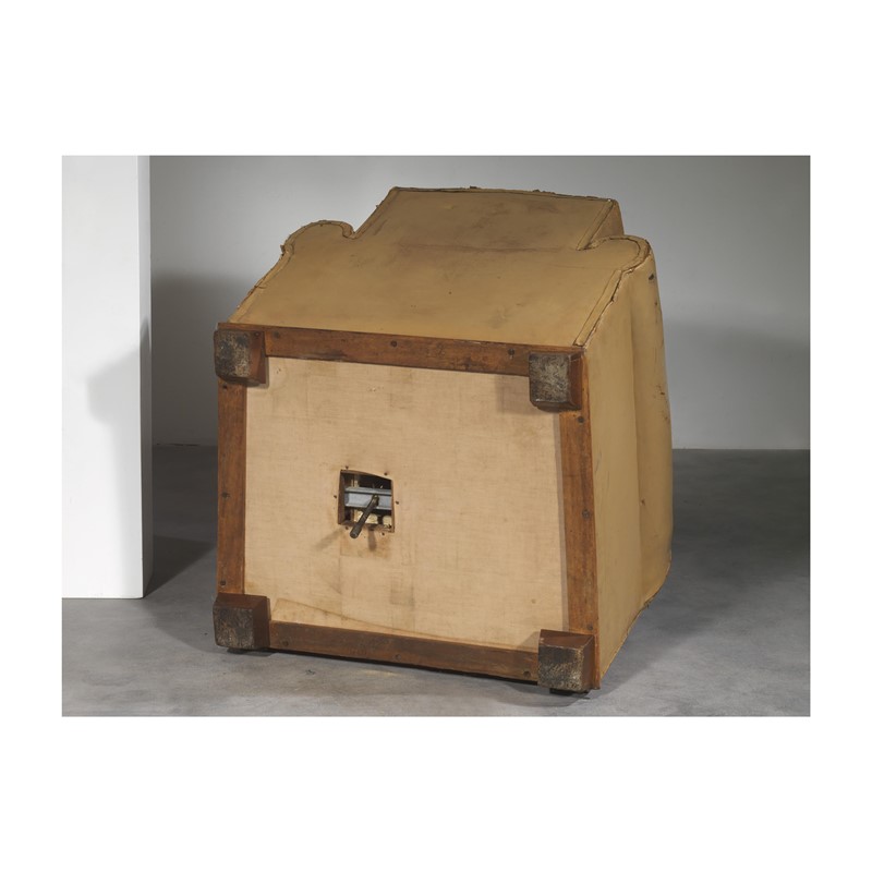 struttura in legno, imbottita e rivestita in pelle nei toni del marrone