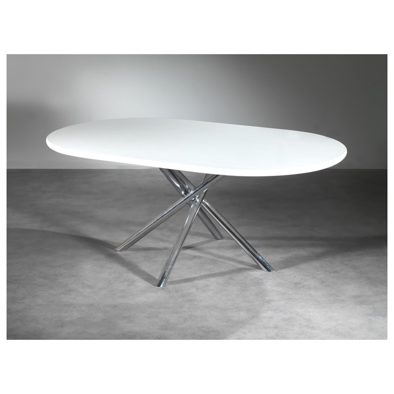 «NODO» TABLE, CHROMED METAL STRUCTURE, WHITE LAMINATE TOP