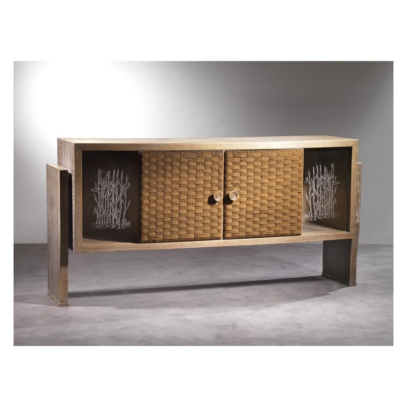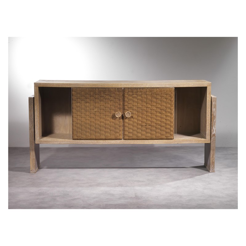 WOODEN, ROPE AND GLASS SIDEBOARD