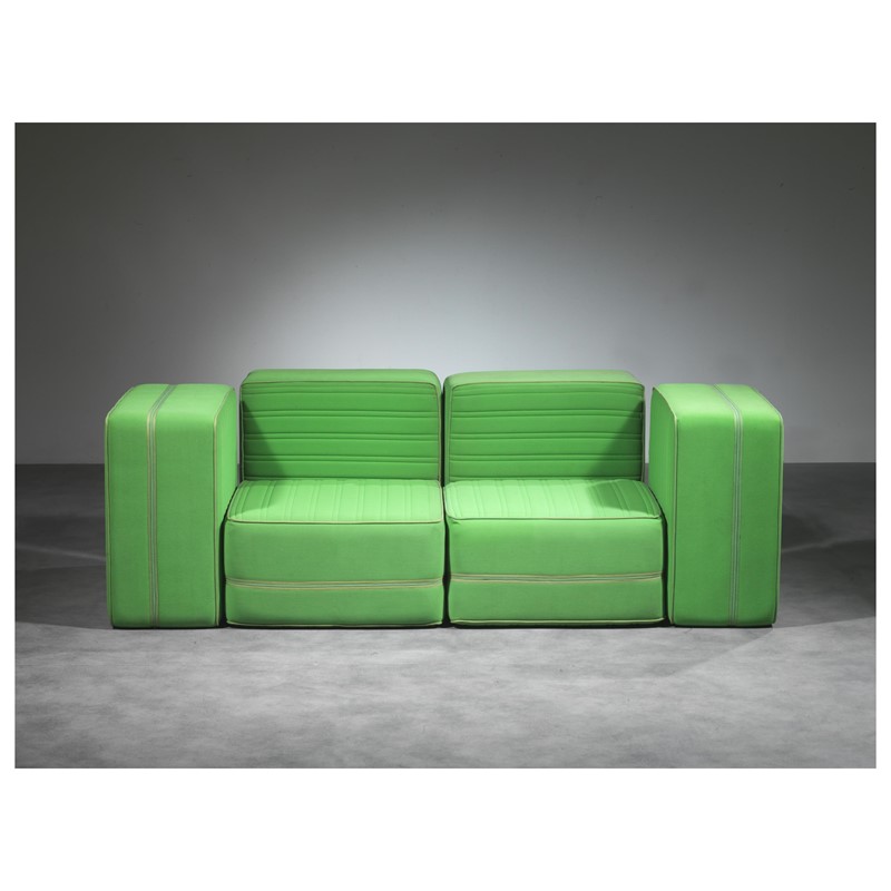 SIX MODULAR «SETTEBELLO» ELEMENTS, GREEN FABRIC UPHOLSTERED FAOM