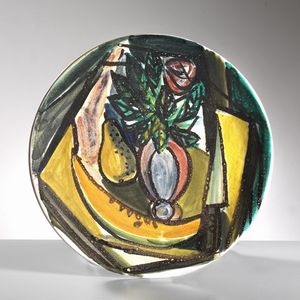 La Cava PIATTO in ceramica, raffigurante natura morta Firmato sul fondo Produzione La Cava, Lastra a Signa, 1955 [..]
