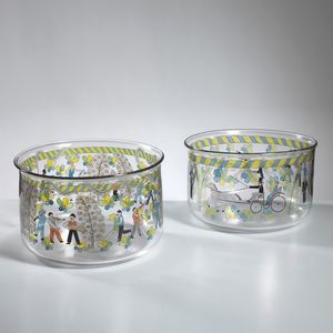 Gunnar Cyren (Gävle, 1931 - 2013) DUE CIOTOLE DELLA SERIE EXPO in cristallo dipinto Firma dell’autore, [..]